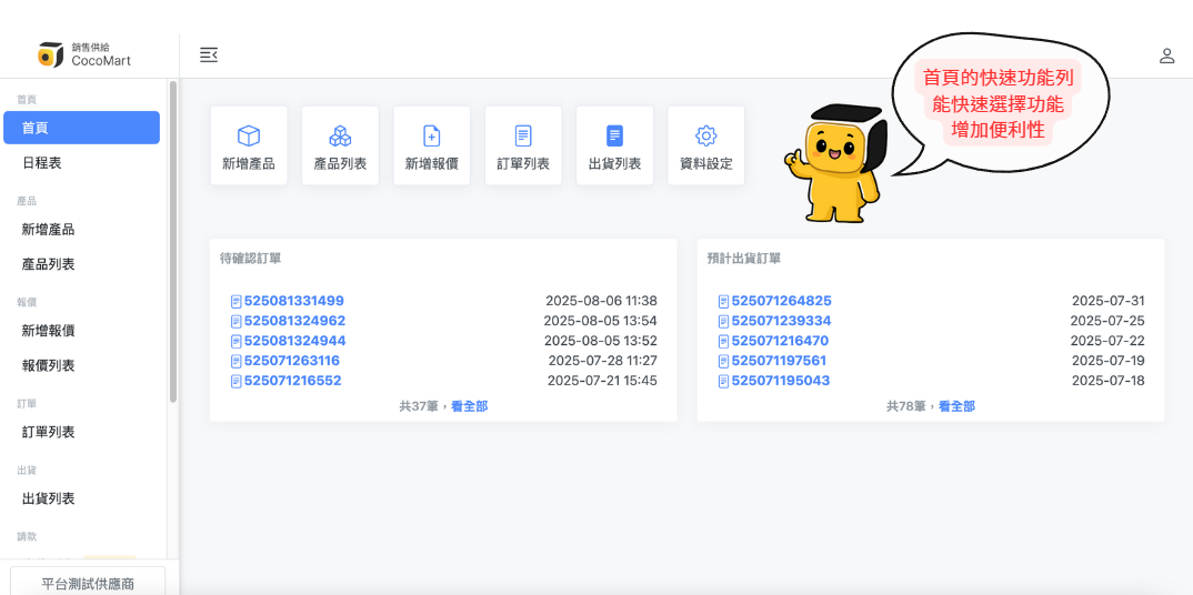 🛠️ CocoMart 「供應商」功能介紹 🛍️產品 新增產品/產品列表🛒新增產品(含下架產品)教學🆕 新增品項了,但餐廳看不到?🚨 「產品」如何設定下單警示?🧾 要怎麼在系統上加入稅金?♻️ 回收品:退回空容器的處理辦法 💰 新增報價/報價列表💰 「新增報價」功能教學🏪 要怎麼針對不同門市做不同報價 🧾訂單 訂單列表📤 接受餐廳訂單與出貨🧾已經接受訂單了,餐廳要怎麼取消 📦出貨 出貨列表📦餐廳沒有下單,我可以直接開出貨單嗎?📦 已經產生出貨單,但有打錯該怎麼辦 ?📤 如何調整我的出貨單順序? 📦退貨 退貨列表📦餐廳退貨後,我要在哪裡看到退貨申請 💰請款 應收列表/請款列表💰 如何向採購商請款?(請款列表、應收列表 📊報表 訂單報表/出貨報表 📊 訂單報表與出貨報表為什麼數字不一樣? 設定 📧 訂單來了,怎麼設定line或 Email 通知? 🕘 我要怎麼設定我的營業時間?