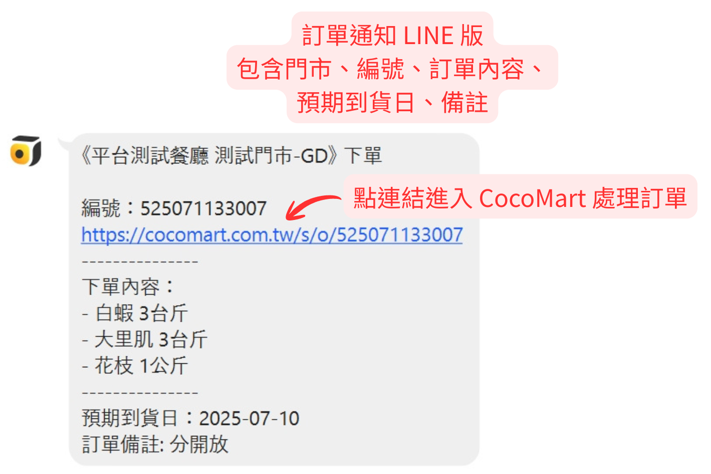 CocoMart 可以用 Email 或 LINE 通知以下三種情形: