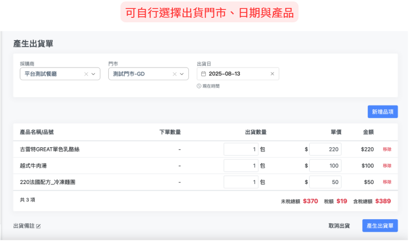📦餐廳沒有下單,我可以直接開出貨單嗎?