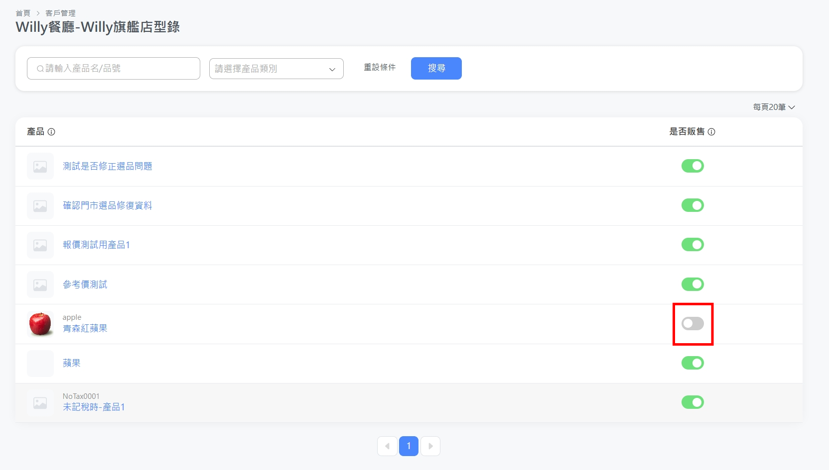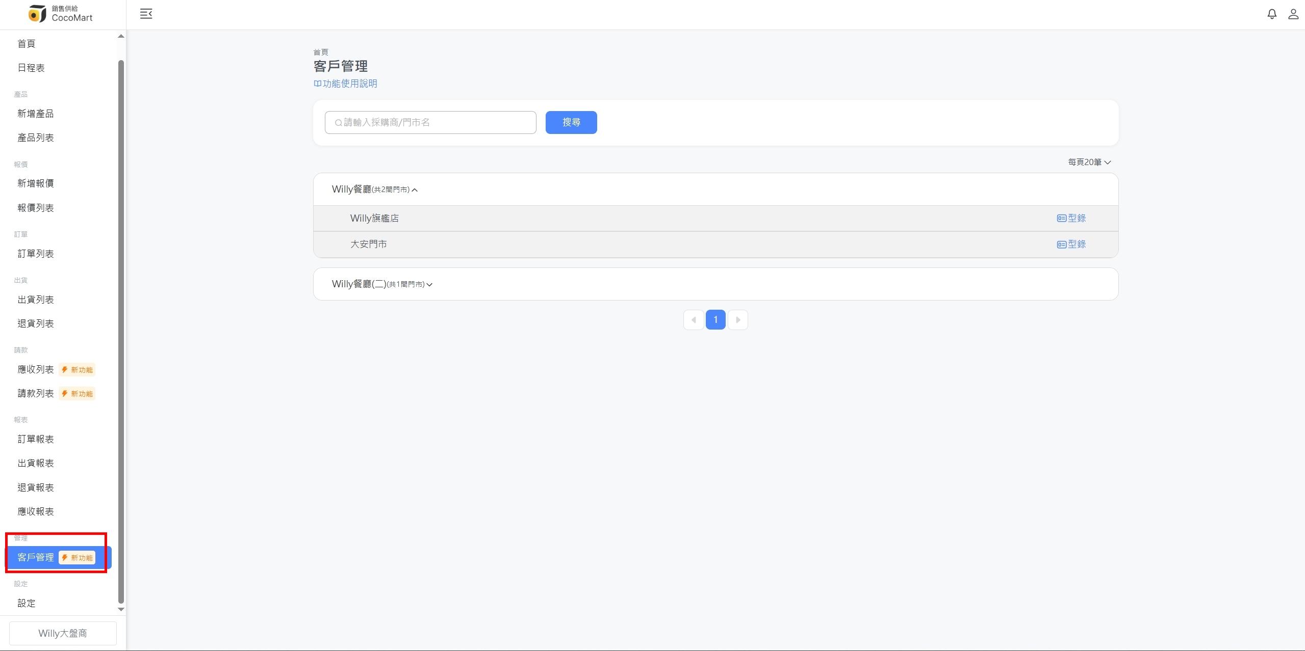 🤝客戶管理 功能教學 我不再提供某個品項給某間門市了,可是還會出給其他門市,可以「對特定門市下架特定產品」嗎? 前往「客戶管理」 找到要管理的門市,點選該門市的「型錄」(即「門市看到的產品列表」) 找到不再販售給該門市的產品,點一下「關閉」 綠色:門市可以下單 灰色:門市看不到該品項,也不可以下單